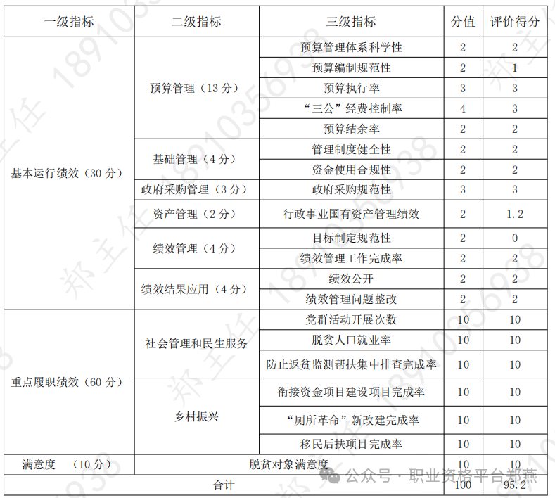 总体来看,2022 年度,县乡村振兴局紧紧围绕促进乡村振兴、助推全域发展、勠力灾后重建,切实推进巩固拓展脱贫攻坚成果同乡村振兴有效衔接工作。但通过评价也发现,县乡村振兴局在绩效目标管理、预算编制、资产管理等方面存在不规范的问题,应进一步加强和改进。县乡村振兴局部门整体绩效评价最终得分 95.2 分。具体指标评分过程和绩效分析见附件 1:部门整体支出绩效评价指标体系。