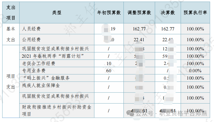 202X年,县乡村振兴局全年财政拨款执行数 5X05.92 万元,财政拨款调整预算数5X05.92万元,部门整体预算执行率100.00%,其中:基本支出决算数 185.18 万元,占比 3.56%;项目支出决算数 5X20.74 万元,占比 9X.44%。202X 年度预算执行明细详见表2-3: